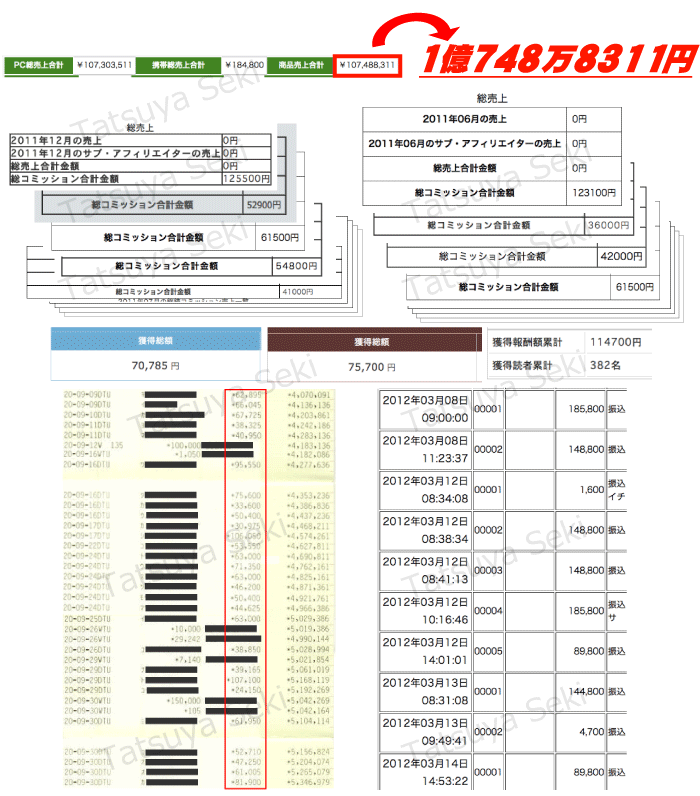 初月206万円、10ヶ月後には1000万円以上、初年で4645万円を稼ぐ。 - ドロップシッピングのノウハウを体系化した教材では、月に1000万円以上の