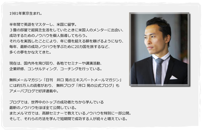 どうでしょう。これであなたを成功へと導いてくれる井口氏の凄さを