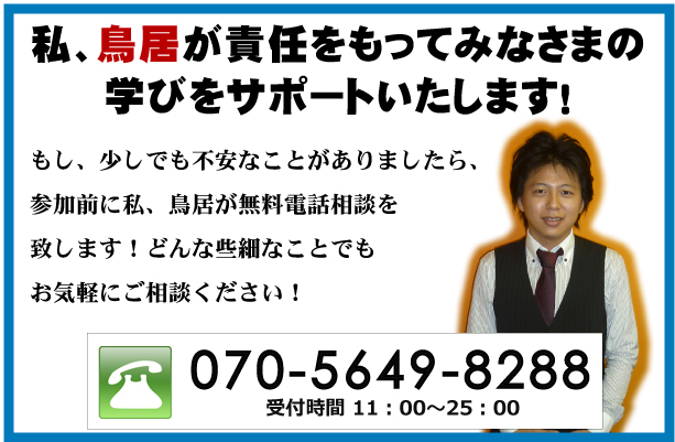 私、鳥居が責任をもってみなさまの学びたい意欲をサポートさせていただきます。